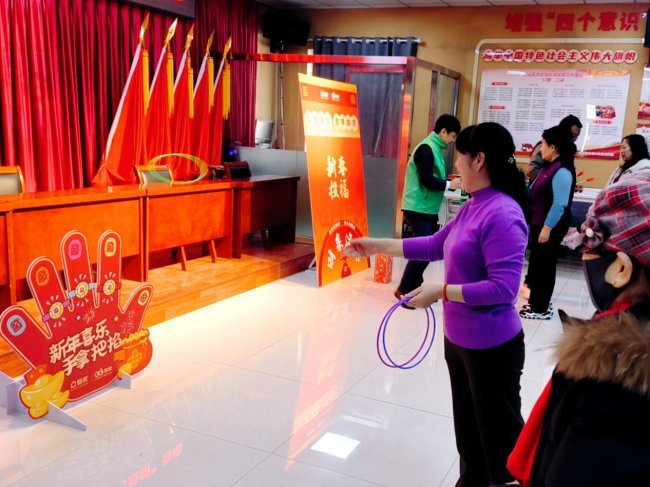 活动现场,传统年俗与现代游戏巧妙融合,让活动现场氛围持续升温。在通州区永丰里社区的投壶游戏区,居民刘女士屏息凝神,箭矢划出优美弧线落入壶中,现场响起阵阵喝彩;套圈游戏区也很热闹,李叔叔看准目标,轻轻一抛,套圈就套中了。他开心得像个孩子,笑着说:“这比玩手机有意思多了,还能和邻居们一起玩,多好啊!”