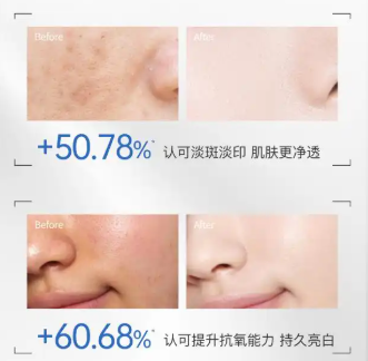 第8周: 针对形成时间在3年以内的晒斑,9人确认“明显变淡”,其中4人用“肉眼可见”形容效果。陈旧性晒斑(5年以上)变化较小。
