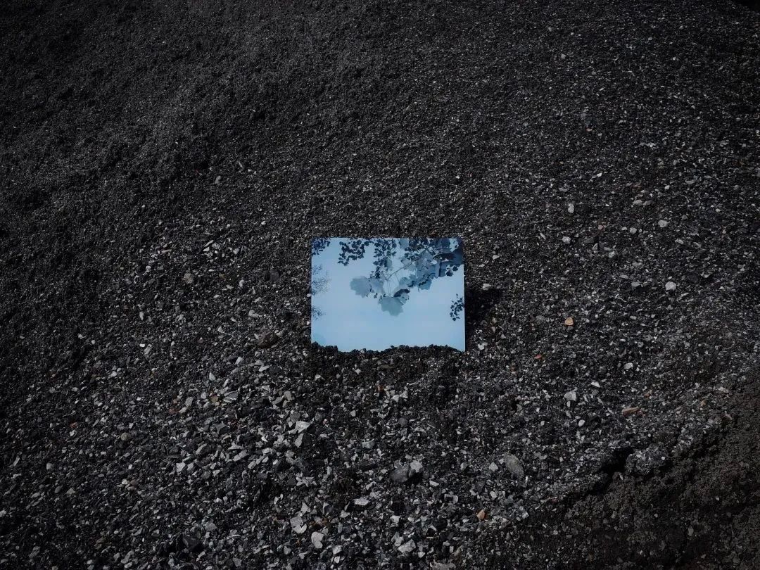 (堆积的矿石与反光镜面成为艺术装置的构成部分)