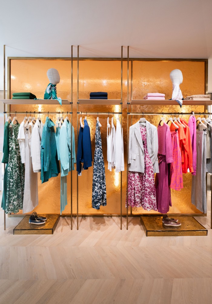 移步店内,空间明亮雅致,氛围温馨宜人。温暖圆融的整体色调与质感高雅的卡拉卡塔金(Calacatta Gold)大理石相得益彰,既彰显 Max Mara 独树一帜的品牌风格,亦于细节处礼赞意大利设计的精湛品质、匠心坚守与美学底蕴。